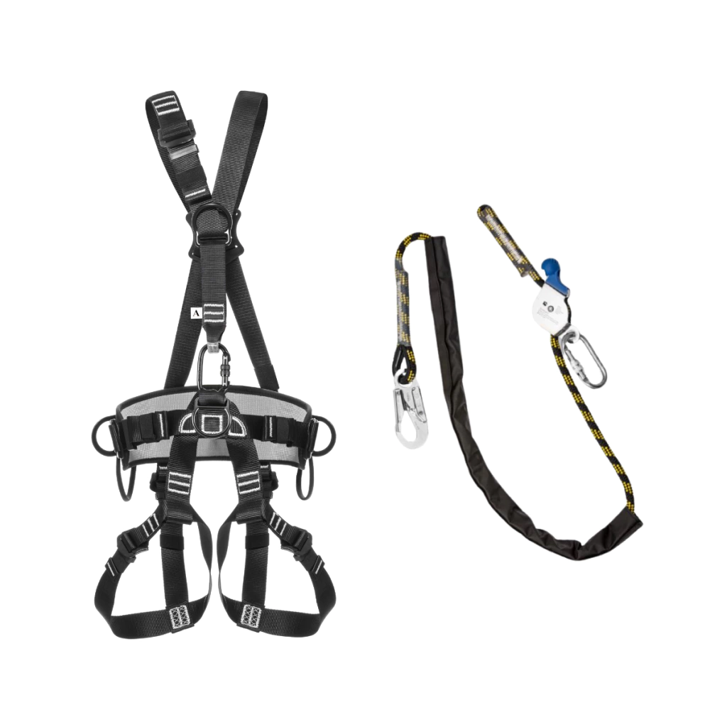 Kit completo para segurança em altura, oferecendo conforto e praticidade. Ideal para quem trabalha em altura e necessita de posicionamento seguro, permitindo maior liberdade de movimentos e confiabilidade nas ancoragens.